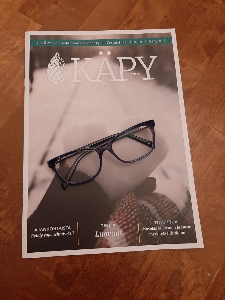 Suomessa vertaistukea lapsensa menettäneille tarjoaa ja organisoi Käpy – Lapsikuolemaperheet ry ja hyvin tarjoaakin ja organisoi. Tämä oli yksi niitä tukikontakteja, joihin ei tarvinnut olla itse yhteydessä, vaan sairaalassa sosiaalityöntekijä kysyi luvan meiltä, välitti yhteystiedot Käpyyn ja alle viikko Supersankarin kuoleman jälkeen meille soitettiin Kävystä. Ei tainnut mennä kuin viikko siitä eteenpäin ja minulle oli löytynyt oma vertaistukihenkilö. Noin ihan vertailun vuoksi, tässä kohtaa taisimme vielä odottaa aikoja sekä neuvolapsykologille että yleissairaalapsykiatrialle.